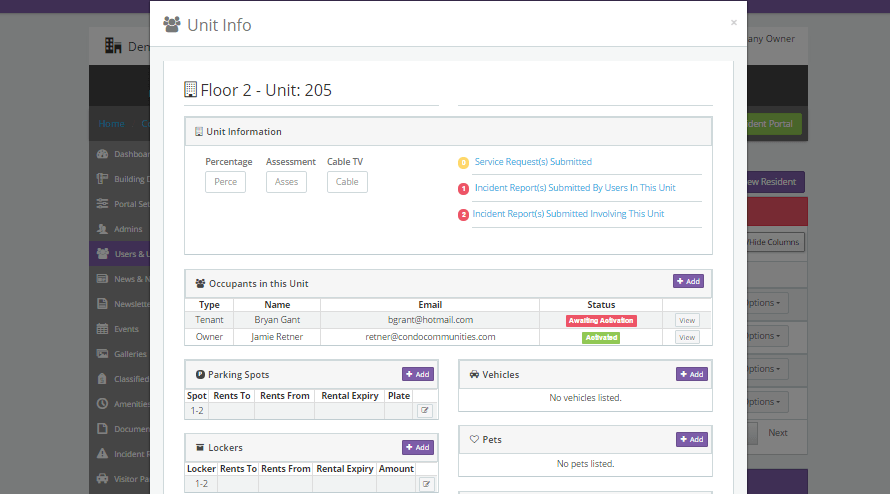 CondoCommunities.com provides infrastructure components that property management companies use in their day to day operations. These include comprehensive resident database services, purchase order tracking, status certificate creation, suppliers lists, communications tools and much more.
