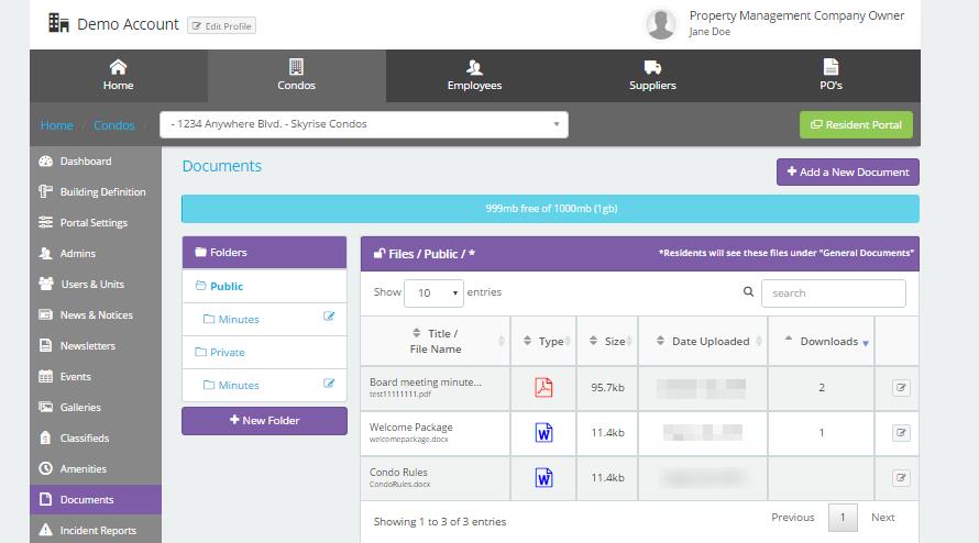 Upload important property documents such as by-laws, board minutes and more for residents to be able to download. Unlimited storage space.